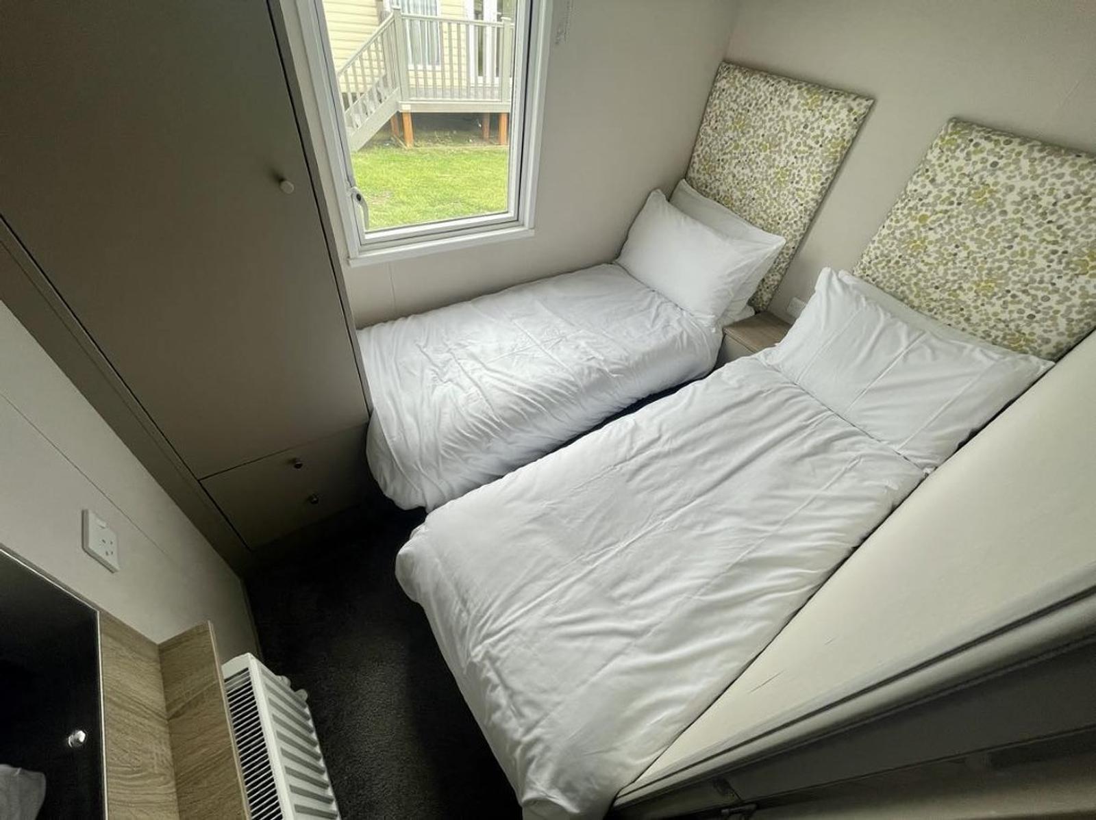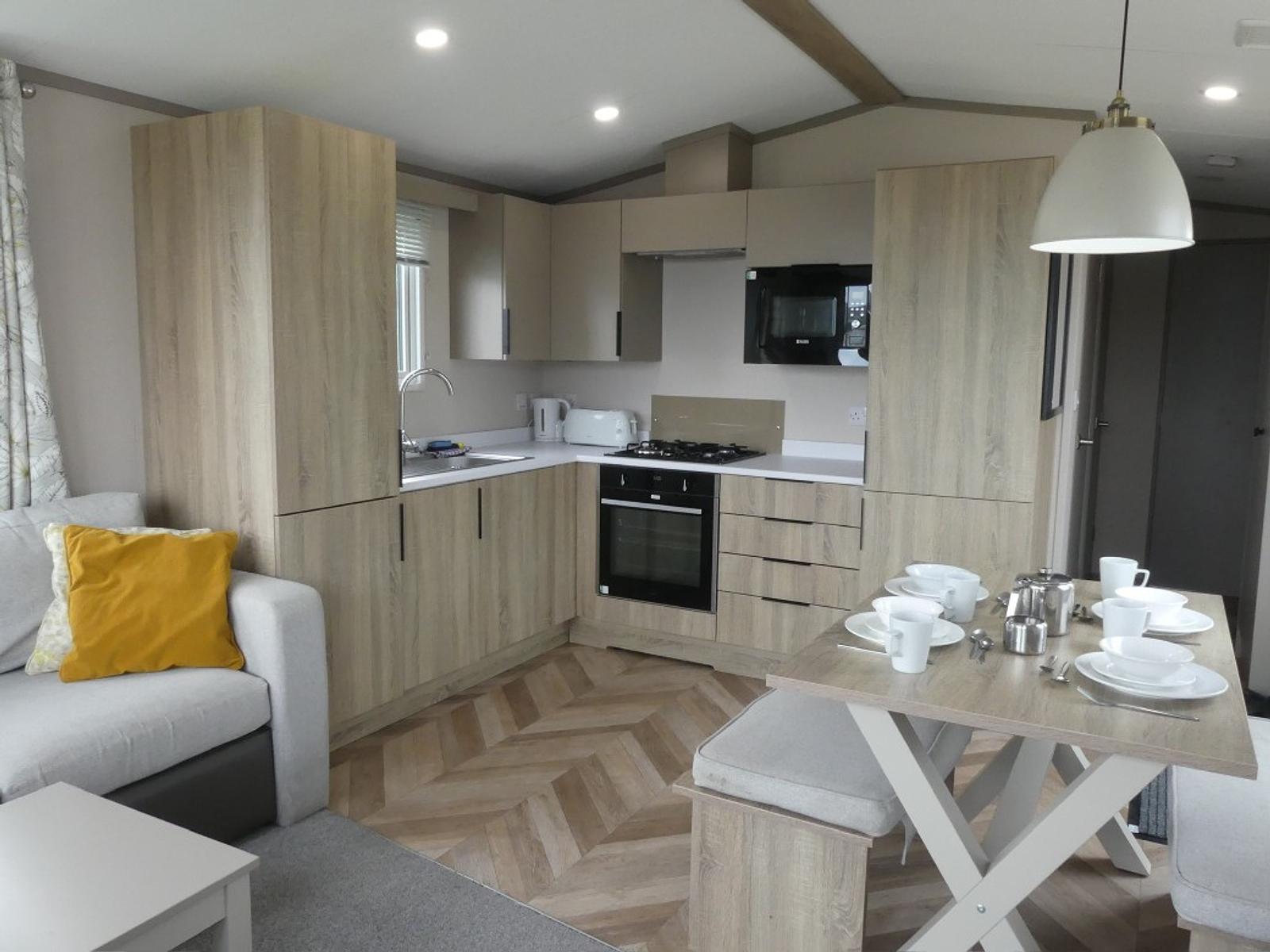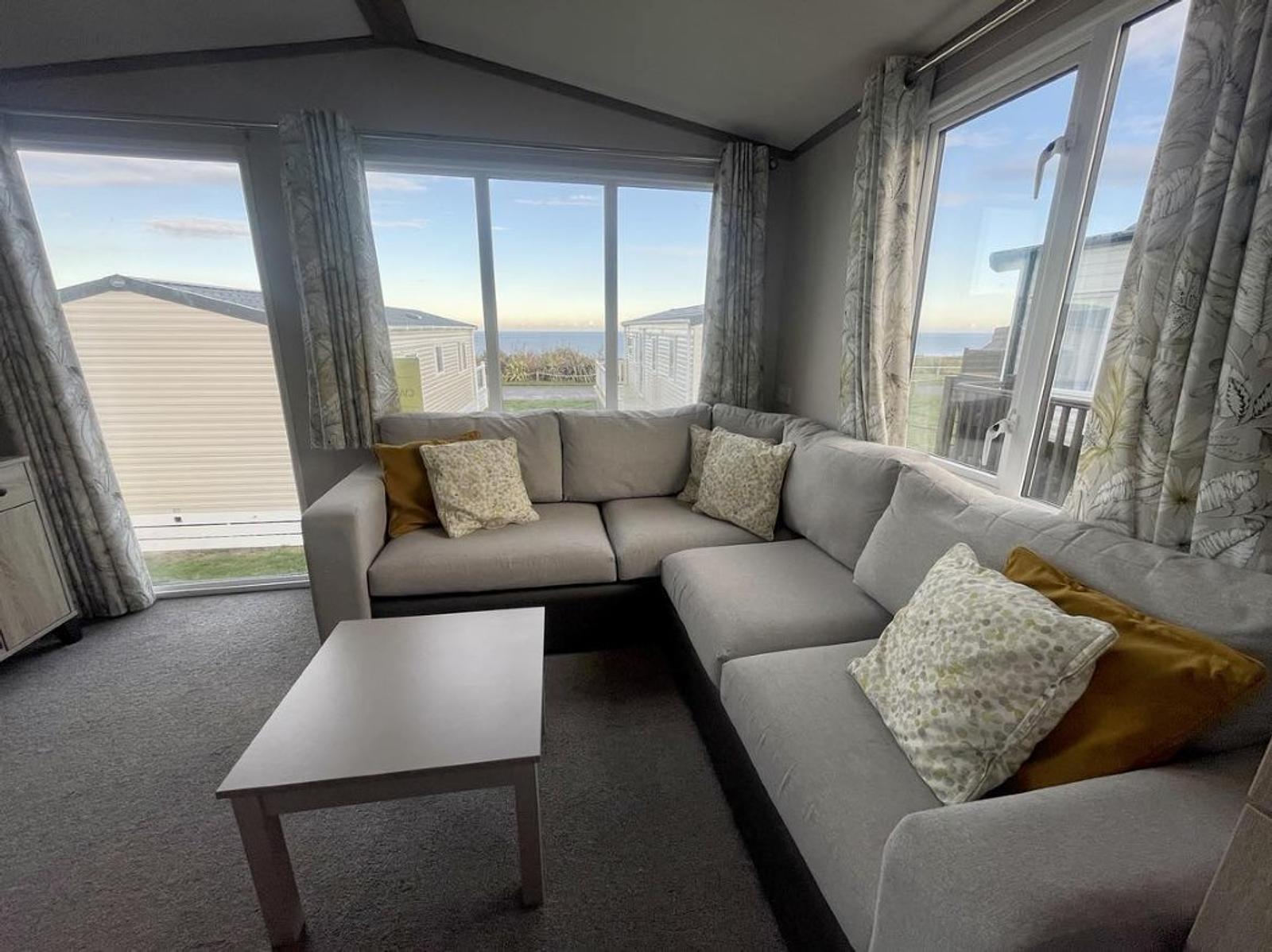 This 4 Berth holiday home is ideal for a family getaway, offering a great holiday experience in a comfortable living space. In this location, you can enjoy partial sea views from the comfort of the sofa in the bright and airy living area. Next to this is the well-equipped kitchen and dining area with a door to the hallway, which leads to your double bedroom, twin bedroom and bathroom. There is a side decking on this holiday home with a parking space alongside. A short stroll through the park will lead you to Saltwick Bay Beach, and the Cleveland Way path is conveniently close for a walk to Whitby or to Robin Hood’s Bay during your stay, making this the perfect spot for a relaxing and enjoyable seaside vacation.